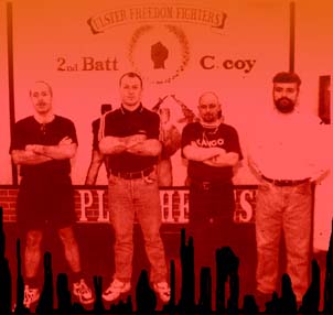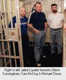 Note, the difference between Loyalist terrorists and the Irish paramilitary resistance are their targets. The IRA strikes at British Crown Forces while Loyalists attack Irish Nationalists. This does not excuse violence but it does make a defining difference between the two. The allegations of IRA violence is complicated by the actions of other paramilitary groups. December 27th of 1997, the INLA killed Billy Wright (at right), leader of the Loyalist Volunteer Force (LVF) as he was leaving prison. Both the INLA and LVF are opposed to the current peace talks. The LVF, a splinter group from the UVF, has been linked to the murders of Catholics, such as Gerry Devlin, civilian, father of two, shot dead on December 5th of 1997. The LVF reponded by going on a retaliatory killing campaign. The LVF is believed to be linked to David Trimble as documented by the Committee, a book on political assasination. More information here. To confuse matters further, there is a group called Direct Action Against Drugs which engages in punishment beatings.