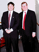 President of the Falklands Society, William Cooke (left), pictured with David Trimble (right), leader of the Ulster (sic) Unionist (sic) Party (UUP).