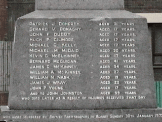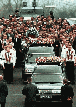 April 17 of 1998: Mark McNeill, Catholic taxi driver shot a half a dozen times. This death has been portrayed as not being sectarian in nature due to the "peace" agreement. McNeil was member of INLA and is said to have been killed in an internal feud.