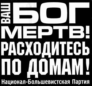 “Накануне проведения “марша для Иисуса” ходили упорные слухи о том, что его участникам попытаются дать бой баркашовцы и лимоновцы. И правда, последние “почтили” собрание своим присутствием. Когда все были ещё в зале, с балкона посыпались листовки, на которых белым по чёрному было написано: “Ваш Бог мёртв! Расходитесь по домам! Национал-Большевистская Партия”. На оборотной стороне листовки – ругательства на английском языке”.
