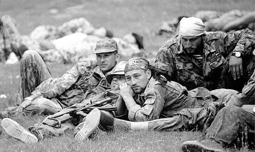 двух групп: юноши-боевики с АК-47 и девушки-носильщицы