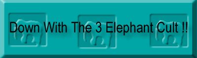 Hi my name is Hardy Rickenbacker and I am here to report on the most under-reported but most damgerous cults to face the world. That is the Three Elephant Conspiracy and the works of TPC Meta Holistic Systems. Please browse throught my sight to find out more about this menace:Bonjour mon nom est Rickenbacker robuste et je suis ici pour rendre compte des cultes sous-enregistrés mais la plupart des damgerous pour faire face au monde C'est la conspiration de trois éléphants et les travaux des systèmes holistiques de méta de TPC. Veuillez parcourir le throught ma vue pour découvrir plus au sujet de cette menace: 3 Elephants Explained !! -- A must read article that outlines the whole problem -- Overt Meta-Sublimation in action -- You could be brainwashed without even knowing it !! About me -- A page that outlines yours truelly. Thanks to Phil for making me such a sharp looking banner for this site. Email me: Hardy Rickenbaker |