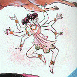 When the Tendous and Saotomes are watching a TV broadcast where they see Pansuto-monster being attacked by a bright light earlier in China, he literally drops in, all beaten up. Meanwhile, when Akane is coming back from tennis, she sees a bright light and a splash is heard from a nearby fountain, where she finds a steaming fountain and a naked girl getting out. Later, the girl introduces herself as Rouge, a poor beautiful girl who was peeped on and robbed while taking a bath by a vulgar, evil (etc.) guy- who they later find out is Pansuto Tarou. When he sees Rouge, he becomes a bit pissed off and tries to beat her up- only to be beaten up by the others. No one believes him when he says that he's the victim and when he protests he stole nothing from Rouge, so he turns into a monster, and busts up the house a bit before leaving. Later, they find out that Rouge was the bright light that they saw earlier, and that Rouge had fallen into (or was doused with water from) the Jhusenkyo spring where the strongest Indian warrior Goddess Asura had drowned 4000 years ago. Rouge's cursed form has 3 heads, and 6 arms, and emits a serious amount of energy.