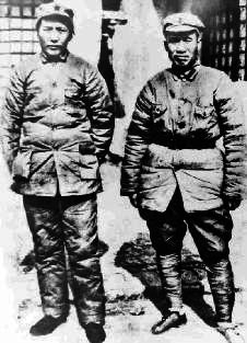 | Chairman Mao in front of the "caves" |