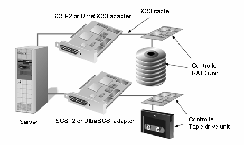 Connecting a Tape Drive to a Separate SCSI Adapter