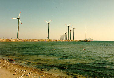 Environmentally friendly energy, windmill park at Ebeltoft port,