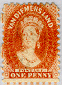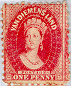 Subsequent supplies of the first three values of this series were printed in Tasmania on unwatermarked paper (1856 - 1857), and, from 1857 to 1869, on paper watermarked with a double-lined numeral (1 for the one penny stamp, 2 for the two pence, and 4 for the four pence).