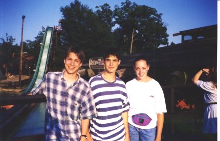 Here is a picture of me, Mark, and Robyn (in that order) at Six Flags Theme Park in New Jersey... We took off for a few days last summer and drove on down, and we had a really cool time. Did you ever want to just take off and go someplace fun just for the hell of it? That's what we did. Anyways, I hope we go back sometime- most of the rides are great, and the animal safari is cool too.