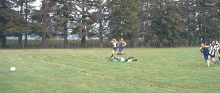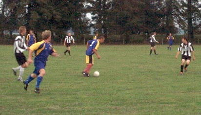 | However, this time, Logan (far) has beaten the defender and keeper,