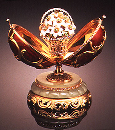 Gold, silver, enamel, diamonds, platinum, ivory, pearls, rock crystal.