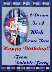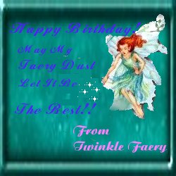 This page was created by Twinkle Faery on September 2, 1998. This page was put up on September 6, 1998. Thankyou for this background set: Thankyou Cranky Angel for the faery on the second birthday gift. Thankyou Northern Dreams for the picture and the button for the third birthday gift. Most of the buttons and all the faery pictures in them were copyrighted. I DID NOT draw them myself.