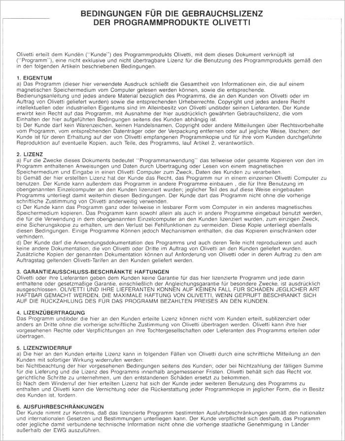 " BEDINGUNGEN FÜR DIE GEBRAUCHSLIZENZ DER PROGRAMMPRODUKTE OLIVETTI " !