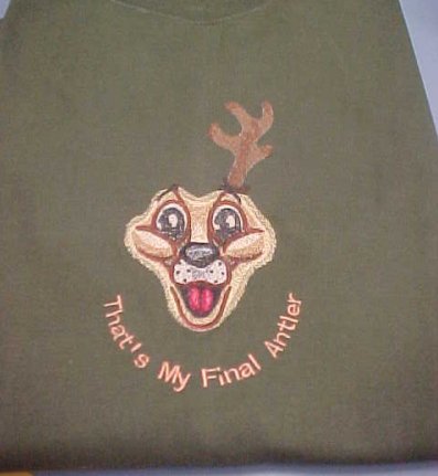 This is a little fun thing I did after seeing this design in the Holiday Issue of CME magazine.  The design is from OESD and is free for the project in the magazine. I put this on a green long-sleeved tee shirt.