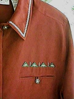 The only other embellishment I used was Stitch N-17 (D-1) around the collar and cuffs, and above the pocket, I used the "Buffalo Pocket Topper" from Embroidery Library.