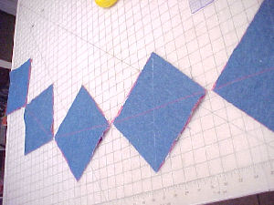 of the X, cut them apart and begin stitching the second direction of the