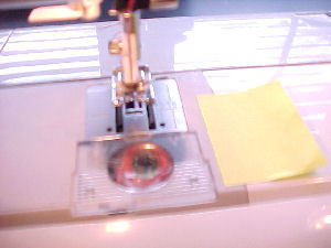Step 6 You are now ready to sew the squares you have just finished into rows for the quilt using a 1" seam allowance. It helped me to stick a post-it note on my machine 1" from the needle as a guide. |
