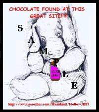 <MY CHOCOLATE WORLD / MONTHLY THEME / CAROUSELS / CHOCOLATE LOVER / A LITTLE ABOUT / CRAFTS / PHOTOS / CHOCOLATE ONLY RECIPES / TIPS FOR MOM / LINKS / KIDLET JOKES / ACKNOWLEDGEMENTS / MIKE'S GALLERY / OUR ANGEL / POETRY / KIDS CRAFTS / HELP CREATE A CYBERPOEM! / AWARDS / EASY RECIPES / TRUE VALUE / ADOPTEES / SNOWGLOBES / INSPIRATIONS / WEBRINGS