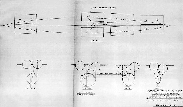 Plan view and sections showing actual arrangement of pontoons,