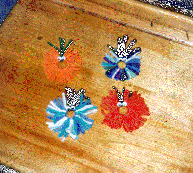 1. Cut twenty 5 inch lengths from orange yarn (I use way more than 20 because with 20 it wasn't full enough - if you have real fluffy wide yarn it would be but otherwise it is not)