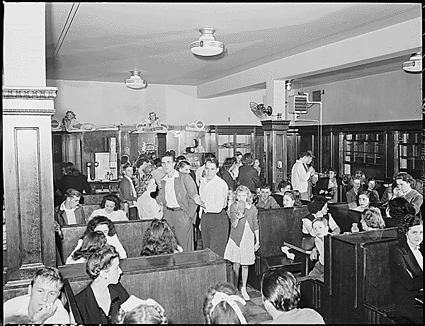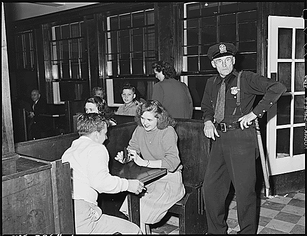 | Policeman and couple in soda fountain prior to Saturday night movie. For a larger image, click here. | |||||||||||||||||||||||||||||||||||||||||||||||||||||||||||||||||||||||||||||||||||||||||||||||||