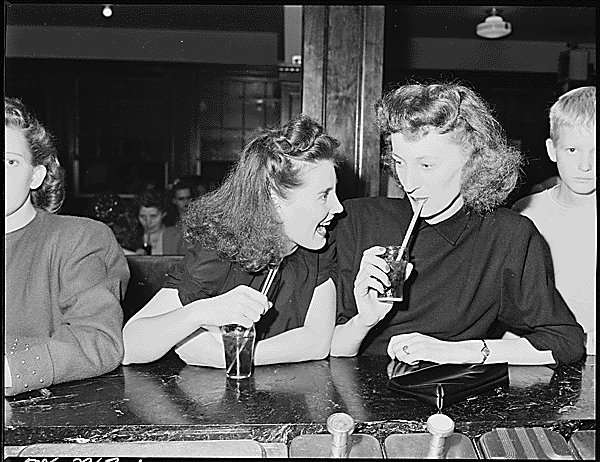 | Ella Jane Fain (right), Harry's daughter, enjoying a coke in the soda fountain before going to the movies. The girl on the left was her cousin. For a larger image, click here. | |||||||||||||||||||||||||||||||||||||||||||||||||||||||||||||||||||||||||||||||||||||||||||||||||