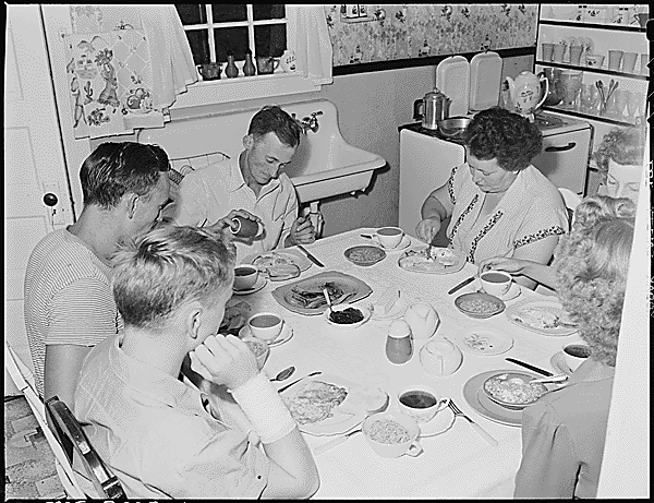 | Below is the Fain family at breakfast. When Mr. Fain worked on night shift, he had breakfast with his family. Otherwise, he and his wife ate breakfast together at 5:15 am. For a larger image, click here. | |||||||||||||||||||||||||||||||||||||||||||||||||||||||||||||||||||||||||||||||||||||||||||||||||