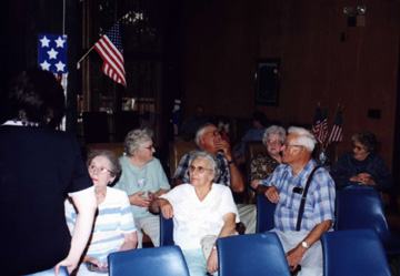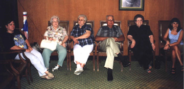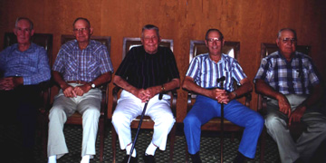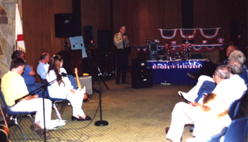 ![]() Here a group chats while waiting on the Saturday night entertainment program shown below. Joe Sylveria in the blue checked shirt. |