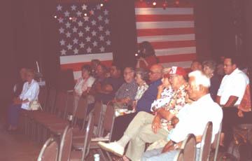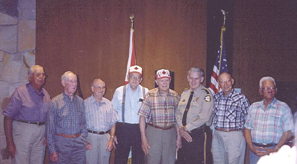 ![]() Far left: John Price 5th from left: Howard Bohannon Center in checked shirt: Charlie Hampton In red cap: Robert Hynds Nearest camera: Joseph Silvera. Veteran's wives and other family members are also shown. Many others are also present listening to the singing. |