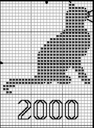 This chart if stitched on 14 hpi aida makes a great Millennium card. The cat body is all black and the lettering can be done in any colour that you desire, though it looks very impressive in metallic thread.