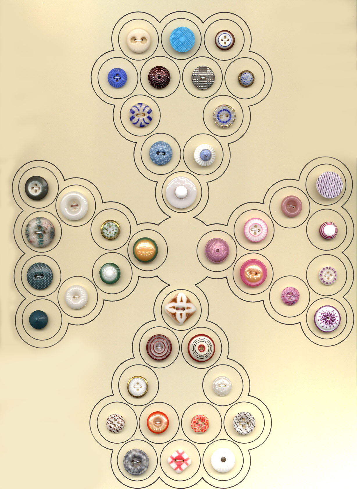 For competitions the buttons are mounted on a 9" X 12" matte board card.