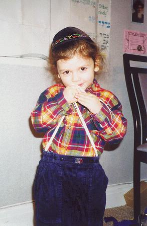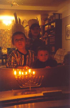 from the wrong end of the menorah). The two older children are wearing