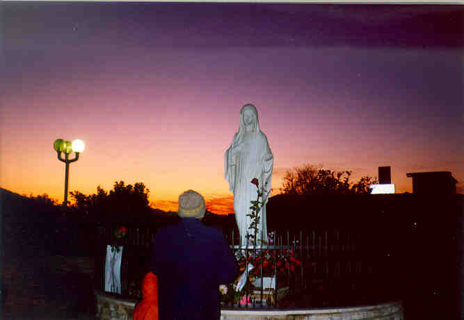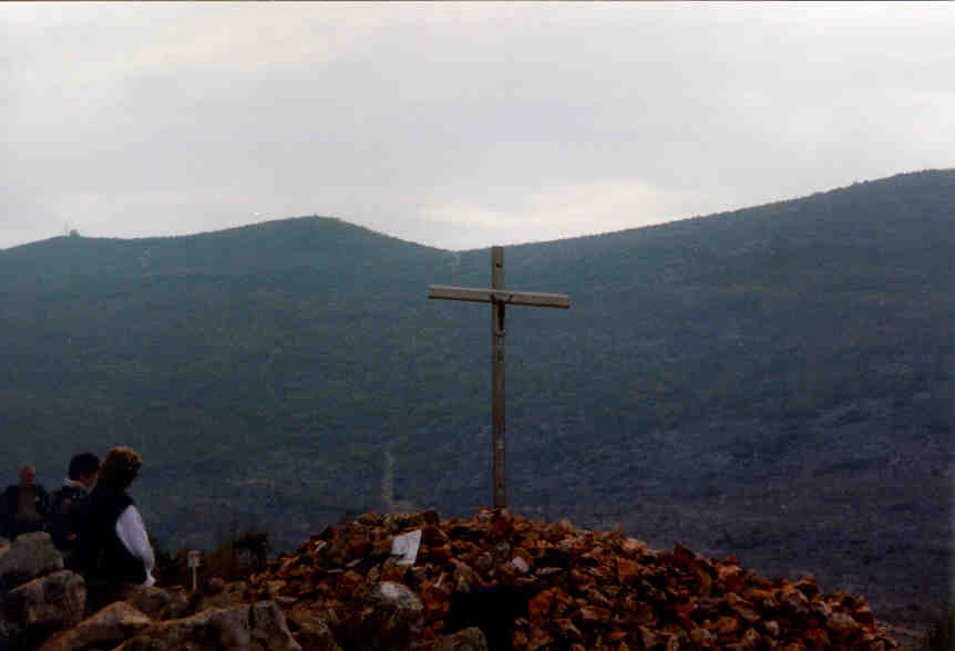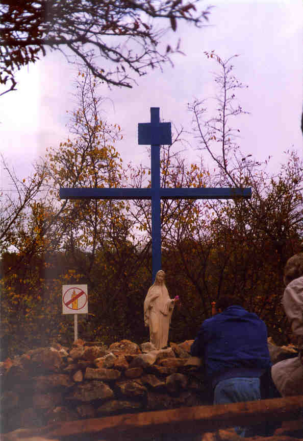 The blue cross where the villagers were allowed to touch Our Lady.