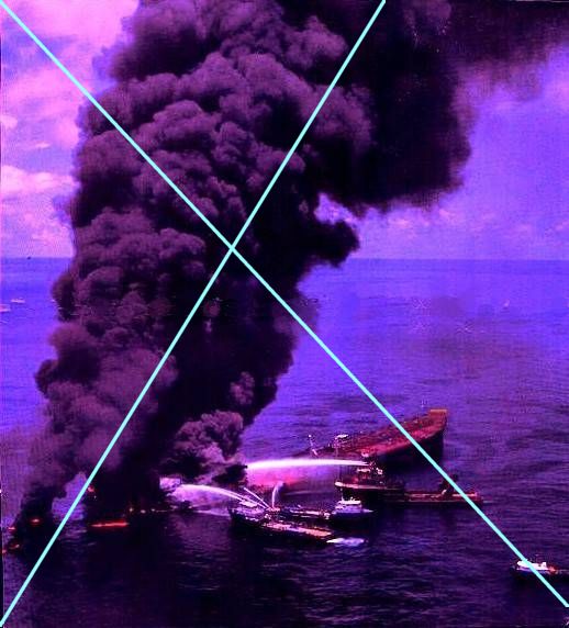 The MEGA BORG divesting itself of its cargo in the Mexican Gulf. Not an action likely to endear it to the U.S. authorities !