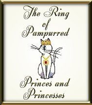 ![]() This Ring of Pampurred Princes and Princesses site is owned by TexasPepper BECAUSE EVERY FELINE DESERVES TO BE PAMPURRED! |