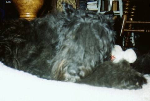 Jackie recovered , & proved to be a delightful old girl of many talents . Inculding an uncanny abillity to open things like refridgerator doors. She was smart, quick to learn & the sweetest lil Bouv girl you could ever hope to meet a real cuddle bear. My Zeker adored her from the day we brought her home, as did every one else in the house.