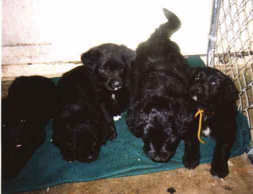 Below are pictures of a litter of Bouvier des Flandres puppies that were rescued 5-7-98 By the Bouvier befrienders of Michigan . There was orginally 11 in the litter 2 died, and 4 were sold at a pet shop. They were only 5 weeks old when we rescued them from the pound