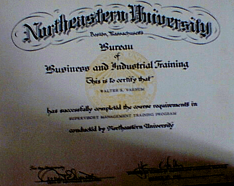 Evidently, he took alot of correspondence courses whenever he was interested in learning about something. He also went to Northeastern University at night and received a certificate in Business and Industrial Training that Olive still had in her things after Walter's death.