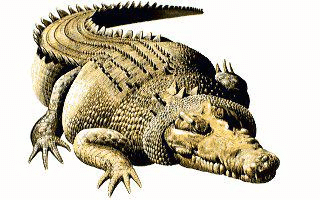 Crocodiles in the Bible: Shihor-Libnath; black-white, a stream on the borders of Asher, probably the modern Nahr Zerka, i.e., the "crocodile brook," or "blue river", which rises in the Carmel range and enters the Mediterranean a little to the north of Caesarea (Josh. 19:26). Crocodiles are still found in the Zerka. Thomson suspects "that long ages ago some Egyptians, accustomed to worship this ugly creature, settled here (viz., at Caesarea), and brought their gods with them. Once here they would not easily be exterminated" (The Land and the Book).