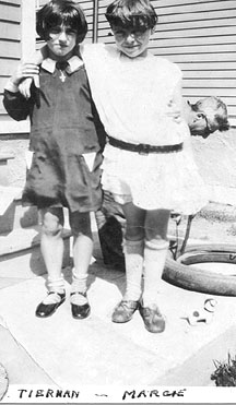 Left is a picture taken mid- to late 1920's. On the left is mom's friend, Dot Tiernan, my mother, Marjory, behind her is my grandfather, James Robertson Malcolm. There are two things that my attention is called to in this photo. One is that my grandfather is changing a car tire (not a bicycle tire), and the second is the high "stockings" my mother is wearing. She told me that when she was a child she had rheumatic fever, and had to wear braces on her legs for a long time. I was not able to tell from enlarging this photo whether she was wearing them here.