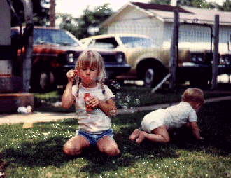 and Shannon crawling around popping them. Notice the cluttered background that distracts from the content of the picture.