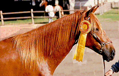 On January 26, 1995, Sonata had her first foal by the exceptional young stallion Ariston MSR (*JOR Augurio X *JOR Palmira de Onrubia (X *JOR Vicus). R.A. Crescendo is a gorgeous Chestnut colt with exceptional gait, high loose termino, great reach and extension and drive! He has excellent conformation and dense bone. Crescendo and his brother R.A. Bartolomeo are both owned by the Guenthers who are the best parents a couple of colts could want! The pictures above are at Crescendo's first show at the LAPPHC show in 1996.
