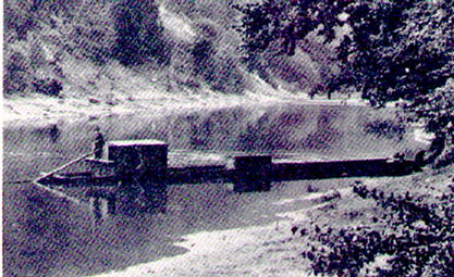 This is a typical pushboat, the most common means of moving people and supplies up and down the rivers that used to flow occasionally in the mountains. Now the creeks only run if it rains really hard or if the snow melts fast. Otherwise, almost all of the old rivers have been slowed to shallow, slow-running streams. Pushboats had a draft shallow enough to go places the steamboats couldn't go. A detachment of the 39th was using a number of pushboats to move their new guns and uniforms up the river to Pikeville when they were attacked at Wireman's Shoals in Floyd County on December 4th, 1862 (Alice Lloyd College Photo Archives).