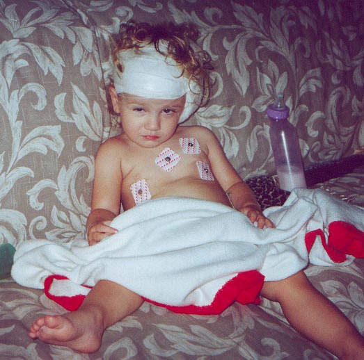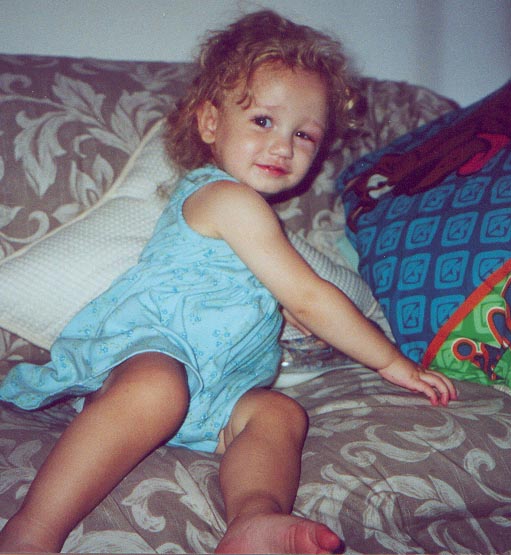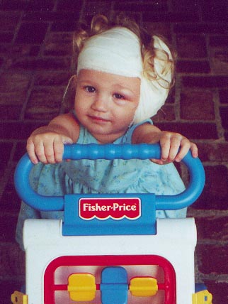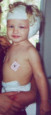 Amanda contracted a deadly bacteria that caused bacterial meningitis in January, 2000. Because of this, she is now profoundly deaf. On June 27, 2000, Dr. William Luxford, of the House Ear Clinic in Los Angeles, performed surgery on her to implant a Cochlear Implant. She had it "turned on" on July 25, 2000 and is now doing amazing things! She hears amazingly well - even responding to me when I call to her from upstairs and she is downstairs. She speaks in over 3-4 word sentences and her intonation is beautiful. She is a miracle and I am amazed with her progress everyday. Ten years ago this would not have been possible - technology has allowed her to speak and her future is so bright because of this. Amanda attends the John Tracy Clinic Preschool and is doing wonderful there. John Tracy Clinic has been my lifesaver since I found out Amanda was deaf! Click here to see her preschool class recently at the Christmas Tree Farm.... |