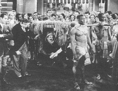 The second movie starring the Marx Brothers features Groucho Marx's most famous entrance - as the great African explorer Captain Spaulding. He enters a party being thrown in his honor by Mrs. Rittenhouse (Margaret Dumont) sitting in a covered sedan chair borne by four African natives. They set him down in front of Mrs. Rittenhouse - then, due to a poor editing cut, he appears to stand up twice in quick succession. Of course, filmmaking was still pretty new then, so it's understandable that something like this could happen. However, a slip is a slip, and so it makes the page.
