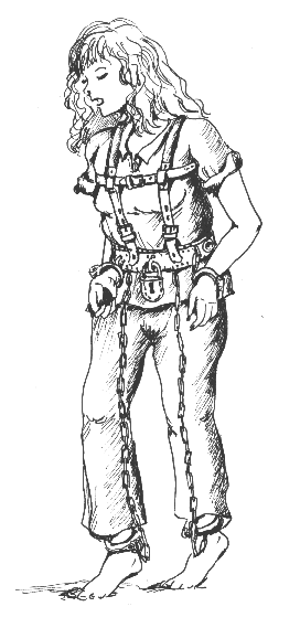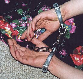 of the belt was a handcuff in which my wrists were firmly locked in....