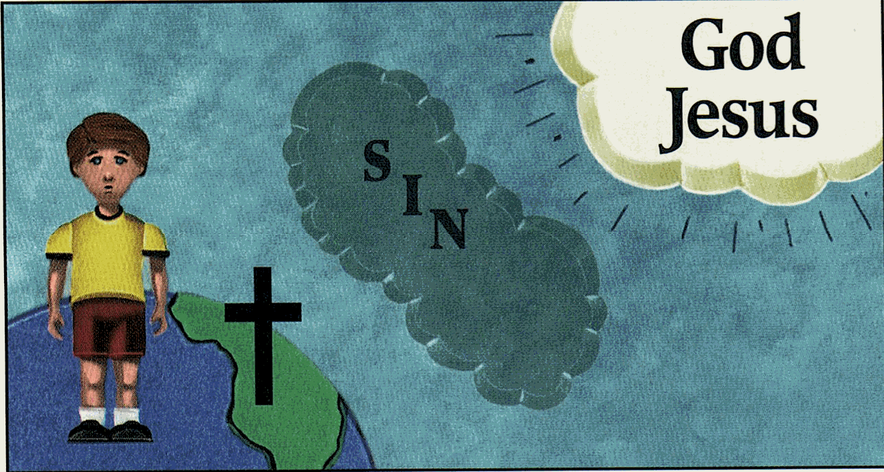 If you are separated from God because of your sin, write the word sinner beside the picture of you. If you are close to God, write your name next to the picture of you.