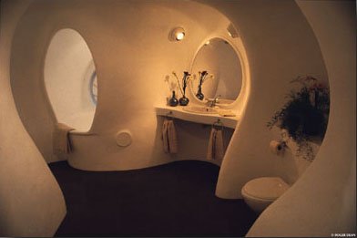 Tectonic Bathroom. 1981. Muestra de la obra arquitectónica de Roger Dean. Este
