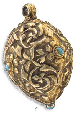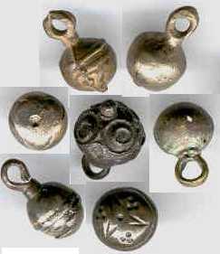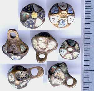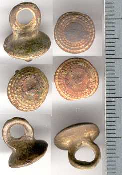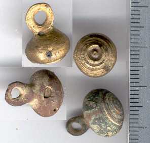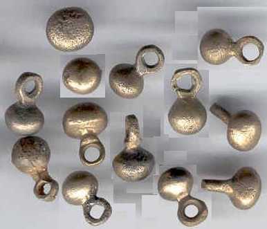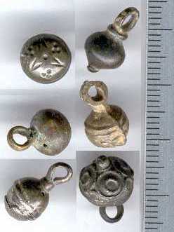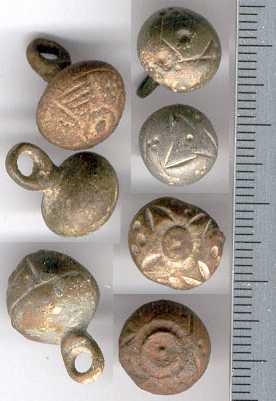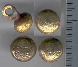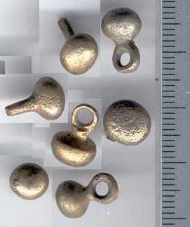 Following text is translated and adapted from http://www.alices-chest.narod.ru. Buttons were made from wood, leather, metal, bone, glass, mother of pearl. Wood and leather buttons were of a short cylindrical shape and were fastened with leather loops. They were chiefly worn on outer clothing. Tin, bronze, silver, and gold buttons showed substantially more variety -- egg-shaped, almond-shaped, pear-shaped, "half-sphere", concave... They differ in size from a pea to an egg and could be decorated in different ways, including engraving, chern, simple chasing...