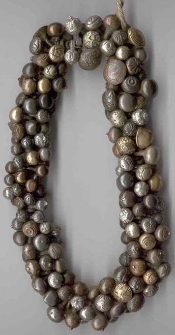 A garment may have from eleven to fifteen, or even more buttons. Fancy dress would use siver or gold buttons, elaborately enameled buttons, or buttons of precious stone. A special deocrative type of buttons were used to fasten mantels or separate colars.