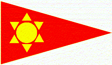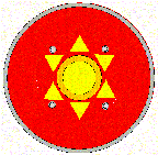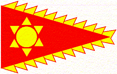 The Red Kaganate Flag consists of a Gold, Six-Rayed Sun image upon a field of Red. More image files of the flag are provided below.
